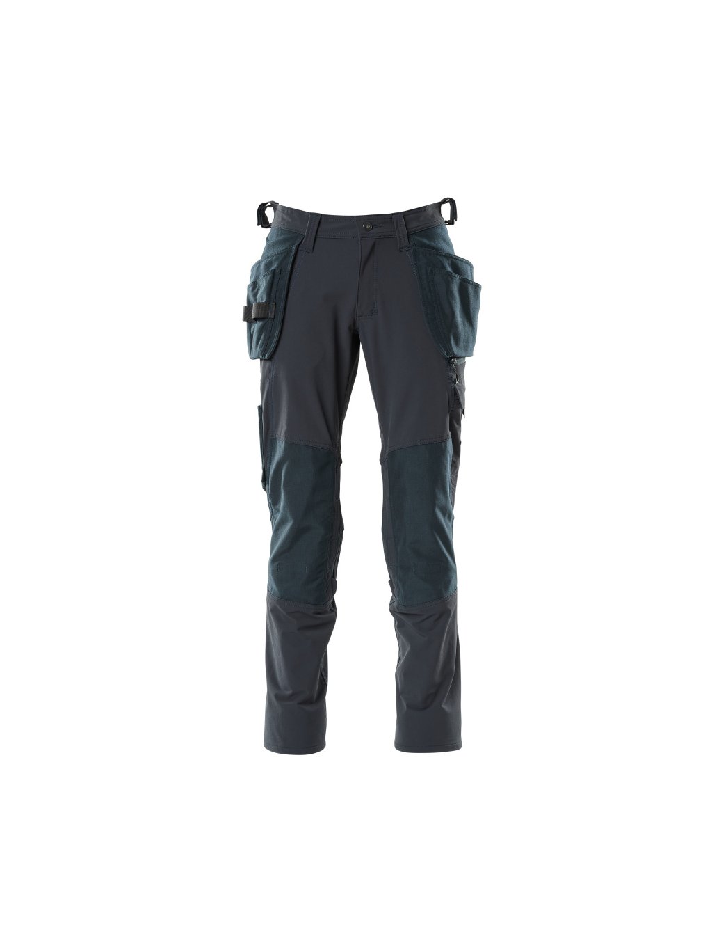 Strečová tkanina je pružná ve všech směrech a nabízí bezkonkurenční volnost pohybu, kdy nic netáhne ani nepřekáží; multifunkční strečová tkanina kombinuje nízkou hmotnost s velmi vysokou odolností a je také vodoodpudivá; kapsy na zavěšení z odolné tkaniny CORDURA®.Kapsy na kolena z odolné tkaniny CORDURA® jsou nastavitelné, takže ochrana kolen je vždy optimálně umístěna; účinné odvětrávání oblasti kolen díky otvoru na zip na vnitřní straně nohavice; lepší viditelnost pro okolí díky reflexním efektům; certifikováno pro použití společně s chrániči kolen MASCOT typu SHORT nebo LONG, protože kapsa na chrániče kolen je výškově nastavitelná.