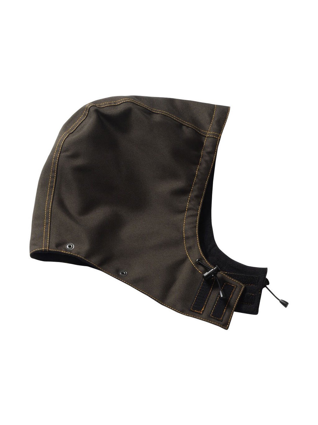Prodyšný, větru a vodě odolný materiál MASCOTEX® s podlepenými švy; fleecová podšívka; nastavitelná elastická stahovací šňůrka; zapínání na suchý zip na bradě; možnost zapínání na patentky.