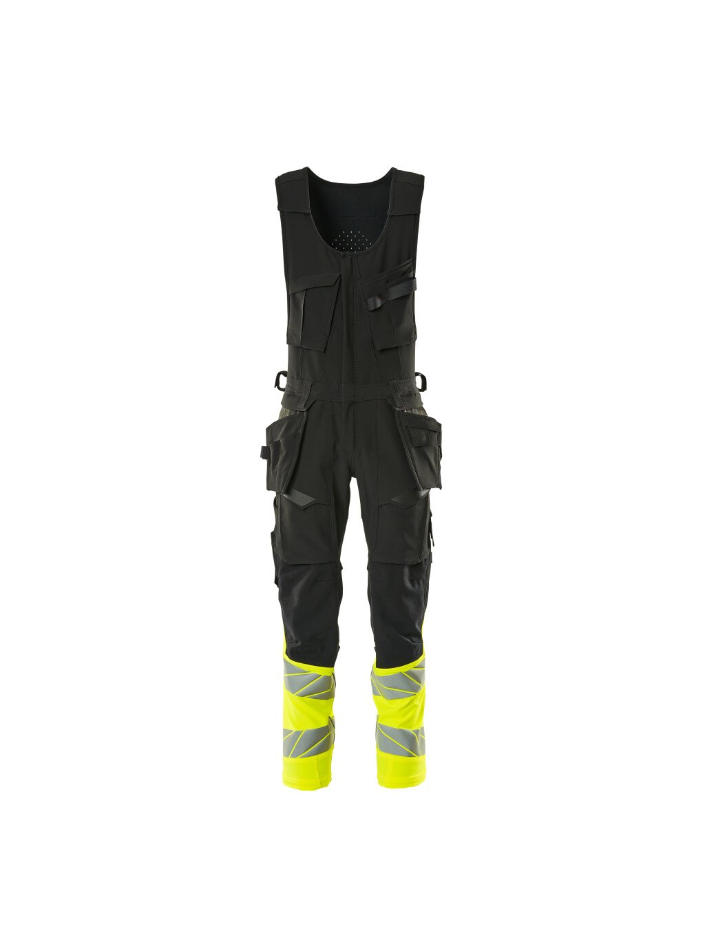 Fluorescenční kontrastní barva a odlesky. S vodoodpudivou úpravou. Dvoubarevné. Ultimátní strečová tkanina s nízkou hmotností a dobrou odolností. Dvojité prošití na nohavicích a v rozkroku. Ergonomicky tvarované nohavice. Odnímatelné závěsné kapsy. Vnitřní závěsná kapsa se zapínáním na patentku. Závěsná kapsa s podšívkou na mobilní telefon a magnetickým zapínáním. Závěsné kapsy s výztuhami z materiálu Kevlar® a CORDURA®. Poutka na opasek. Poutka na nářadí na obou stranách pasu. Zapínání na dvoucestný zip s dvojitou klopou chránící před nepříznivým počasím. Přední kapsy. Zadní kapsy, vyztužené a s klopou. Skrytá poutka na kladivo na obou stranách. Knoflík (odnímatelný) pro připevnění pouzdra na nůž. Skládací kapsa na pravidla s kevlarovými® výztuhami. Přední stehenní kapsy s klopou. Kolenní kapsy z obousměrně strečové tkaniny CORDURA® s odvětráváním. Jednoduché a individuální nastavení výšky kolenních kapes. Stehenní kapsa s podšívkou na mobilní telefon, magnetickým zapínáním a integrovaným držákem na průkaz totožnosti. Pouzdro na průkaz totožnosti je odnímatelné. Svislý zip pro větrání na zadní straně stehna. Hrudní kapsa s kapsou na pero. Náprsní kapsa na mobilní telefon s klopou. Nastavitelné ramenní popruhy se zapínáním na suchý zip. Odvětrávání v zadní části. S potiskem efektů. Rozpáráním červeného švu na vnitřní straně konce nohavic lze prodloužit spodní šev o 3 cm. K tomuto modelu doporučujeme následující ochranu kolen: 00418-100, 00718-100, 50451-916 nebo 20118-915. Certifikováno společně s chráničem kolen typu SHORT nebo LONG podle normy EN 14404.