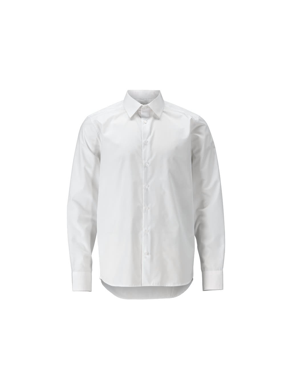 Základní. Úzký střih. Průstřih na zádech zajišťuje, že košile kopíruje pohyby těla a dobře sedí na zádech. Límec se šňůrkami. Se zapínáním na knoflíky. Nastavitelné manžety.