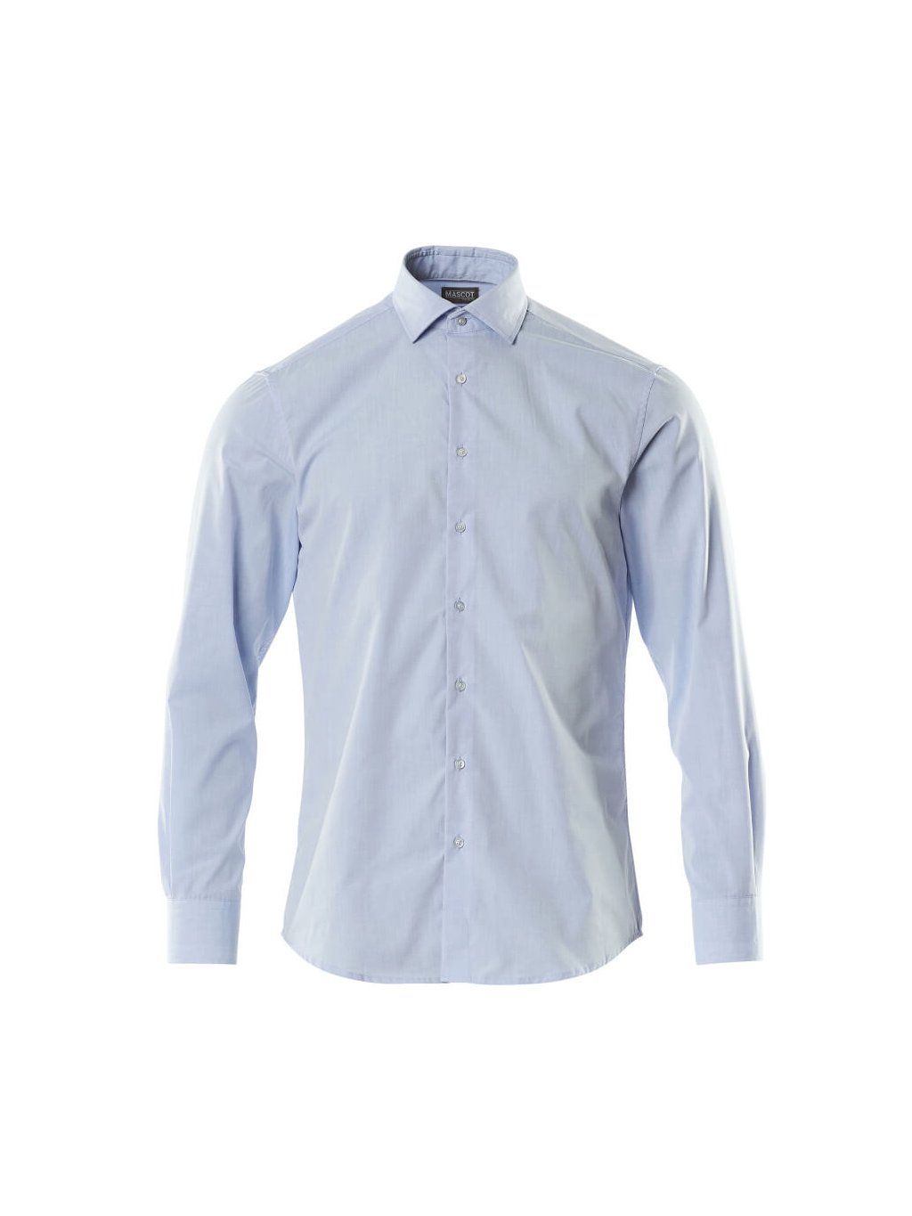Popelín je pevně tkaná a hladká košilová tkanina; Moderní střih přiléhající k tělu s dostatečnou volností pohybu; Zapínání na knoflíky; Límec s límcovými šňůrkami; Nastavitelné manžety.