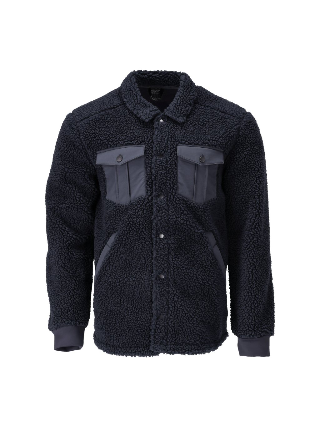 Upevnění pomocí přítlačných čepů. Náprsní kapsy s klopou. Přední kapsy se skrytým zapínáním na patentky. Zesílení na loktech. Žebrované manžety na rukávech.