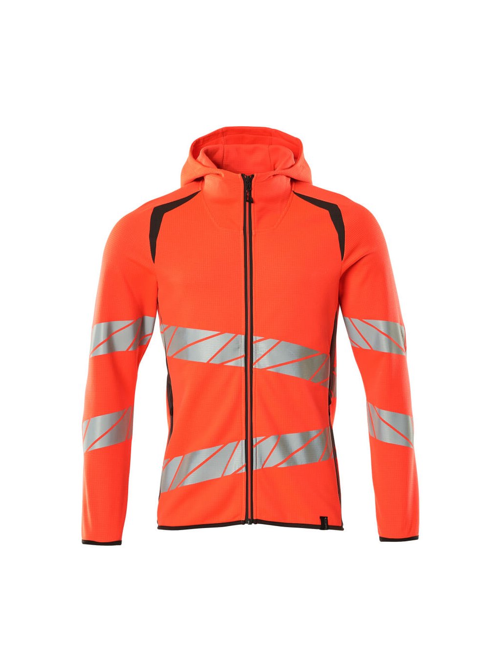 Mikina s kapucí na zip Hi-vis červená/tmavě antracitová