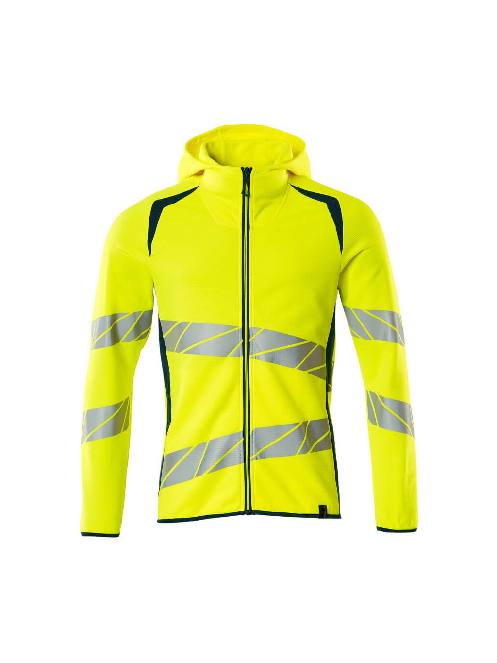 Mikina s kapucí na zip Hi-vis žlutá/tmavě petrolejová