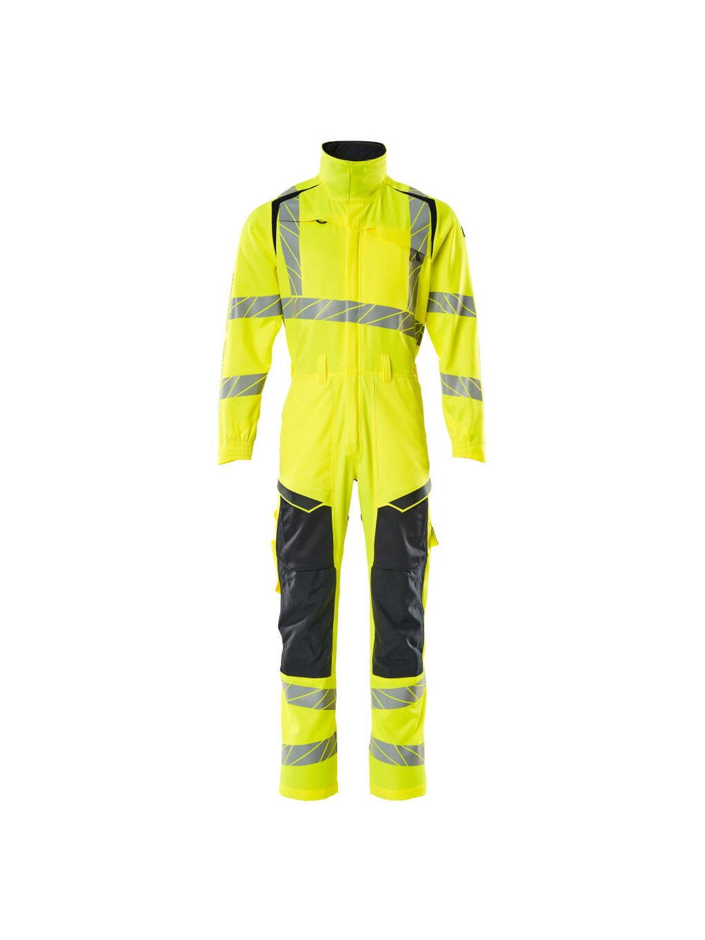 Fluorescenční a s diagonálními odlesky. Části výrobku jsou vyrobeny z elastické tkaniny. Kombinace lehké tkaniny kvality 236 a tkaniny ULTIMATE STRETCH kvality 511. Stojatý límec. Zapínání na dvoucestný zip, léga proti povětrnostním vlivům a patentky. D-kroužek. Náprsní kapsa na zip. Elastické zápěstí. Dvojité spadlé švy na nohavicích a v rozkroku. Nohavice kalhot jsou ergonomicky tvarované. Přední kapsy. Zesílené zadní kapsy. Přístup dovnitř na obou stranách. Skryté poutko na kladivo na pravé straně. Vyztužená kapsa na skládací pravidla. Kapsy s klopou na předním stehně. Kapsy na kolenou z odolného materiálu CORDURA® (500 D), výškově nastavitelné. Jednoduché a individuální nastavení výšky kolenních kapes. Stehenní kapsa s kapsou na mobilní telefon, klopou a skrytými druky. Elastická zadní část. S potiskem efektů. Rozpáráním červeného švu na vnitřní straně konce nohavice lze prodloužit rozkrok o 3 cm. K tomuto modelu doporučujeme následující ochranu kolen: 00418-100, 00718-100, 50451-916 nebo 20118-915. Certifikováno společně s chráničem kolen typu SHORT nebo LONG podle normy EN 14404.