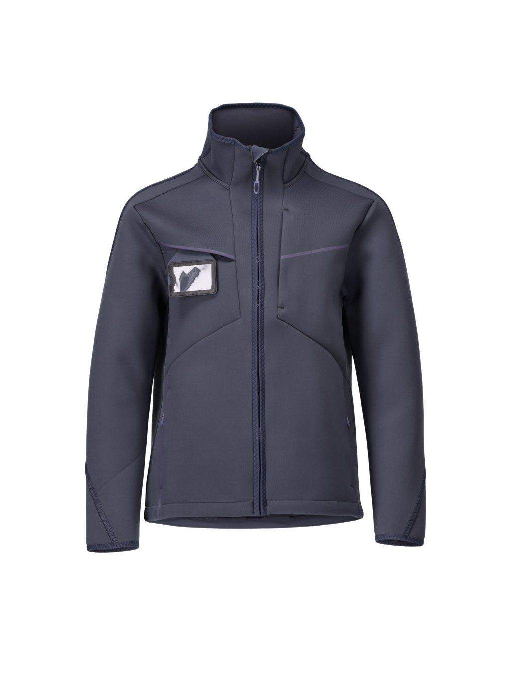 Tkanina v metráži s elastickým materiálem. Prodyšná a vodoodpudivá. Moderní střih. Zapínání na zip. Stojatý límec. Náprsní kapsa na zip. Přední kapsy na zip. Vnitřní kapsy. Odnímatelné pouzdro na průkaz totožnosti. Elastické zápěstí. Reflexní efekty.