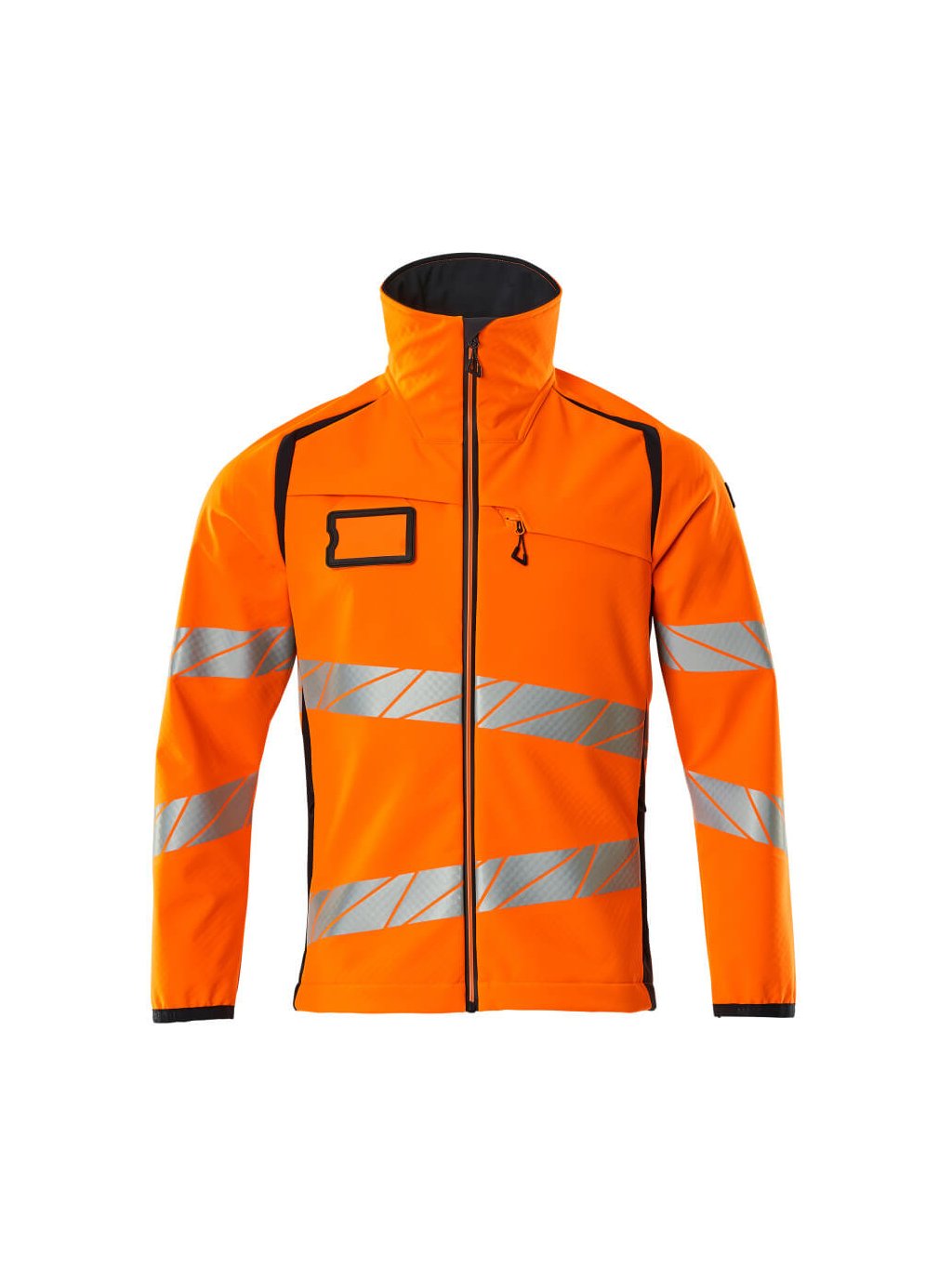 Fluorescenční a s diagonálními odlesky. Prodyšný, větruodolný a vodoodpudivý. Moderní přiléhavý střih s dostatečnou volností pohybu. Stojatý límec. Dvoubarevný. Zapínání na zip a vnitřní ochranný pruh proti povětrnostním vlivům. Náprsní kapsa na zip. Přední kapsy s voděodolnými zipy. Vnitřní kapsy. Elastické zápěstí. Nastavitelný elastický spodní lem. Odnímatelné pouzdro na průkaz totožnosti.