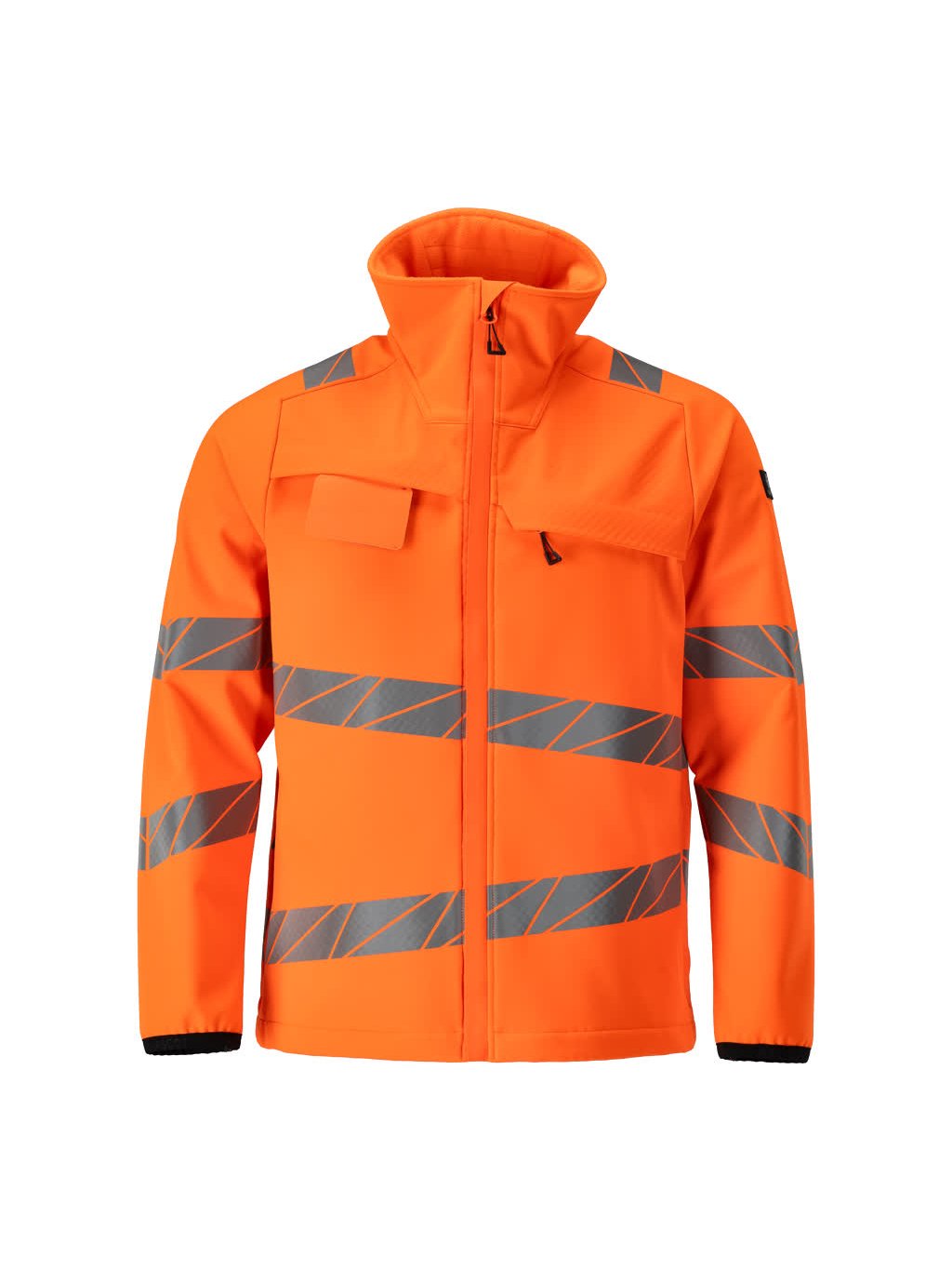 Fluorescenční a s diagonálními odlesky. Prodyšný, větruodolný a vodoodpudivý. Moderní přiléhavý střih s dostatečnou volností pohybu. Stojatý límec. Zapínání na zip a dvojitý ochranný pruh proti povětrnostním vlivům. Náprsní kapsa na zip. Přední kapsy na zip. Vnitřní kapsy. Elastické zápěstí. Nastavitelný elastický spodní lem. Odnímatelné pouzdro na průkaz totožnosti.