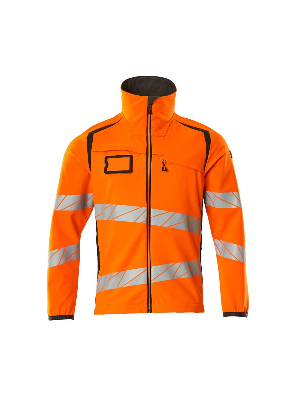 Fluorescenční a s diagonálními odlesky. Prodyšný, větruodolný a vodoodpudivý. Moderní přiléhavý střih s dostatečnou volností pohybu. Stojatý límec. Dvoubarevný. Zapínání na zip a vnitřní ochranný pruh proti povětrnostním vlivům. Náprsní kapsa na zip. Přední kapsy s voděodolnými zipy. Vnitřní kapsy. Elastické zápěstí. Nastavitelný elastický spodní lem. Odnímatelné pouzdro na průkaz totožnosti.