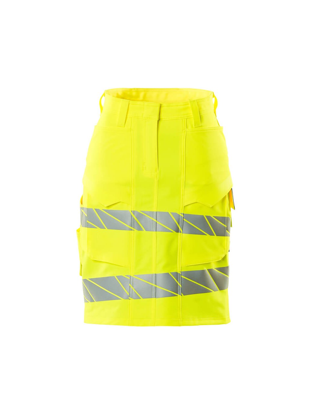 Dámský střih DIAMOND. Fluorescenční s odlesky. S vodoodpudivou úpravou. Ultimátní strečová tkanina s nízkou hmotností a dobrou odolností. Skryté zapínání na knoflíky. Zapínání na zip. Poutka na opasek. Přední kapsy. Vyztužené zadní kapsy s klopou. Skrytá poutka na kladivo na obou stranách. Sklopná kapsa na pravidla s kevlarovými® výztuhami. Přední stehenní kapsy s klopou. Stehenní kapsa s podšívkou na mobilní telefon, magnetickým zapínáním a integrovaným držákem na průkaz totožnosti. Pouzdro na průkaz totožnosti je odnímatelné.
