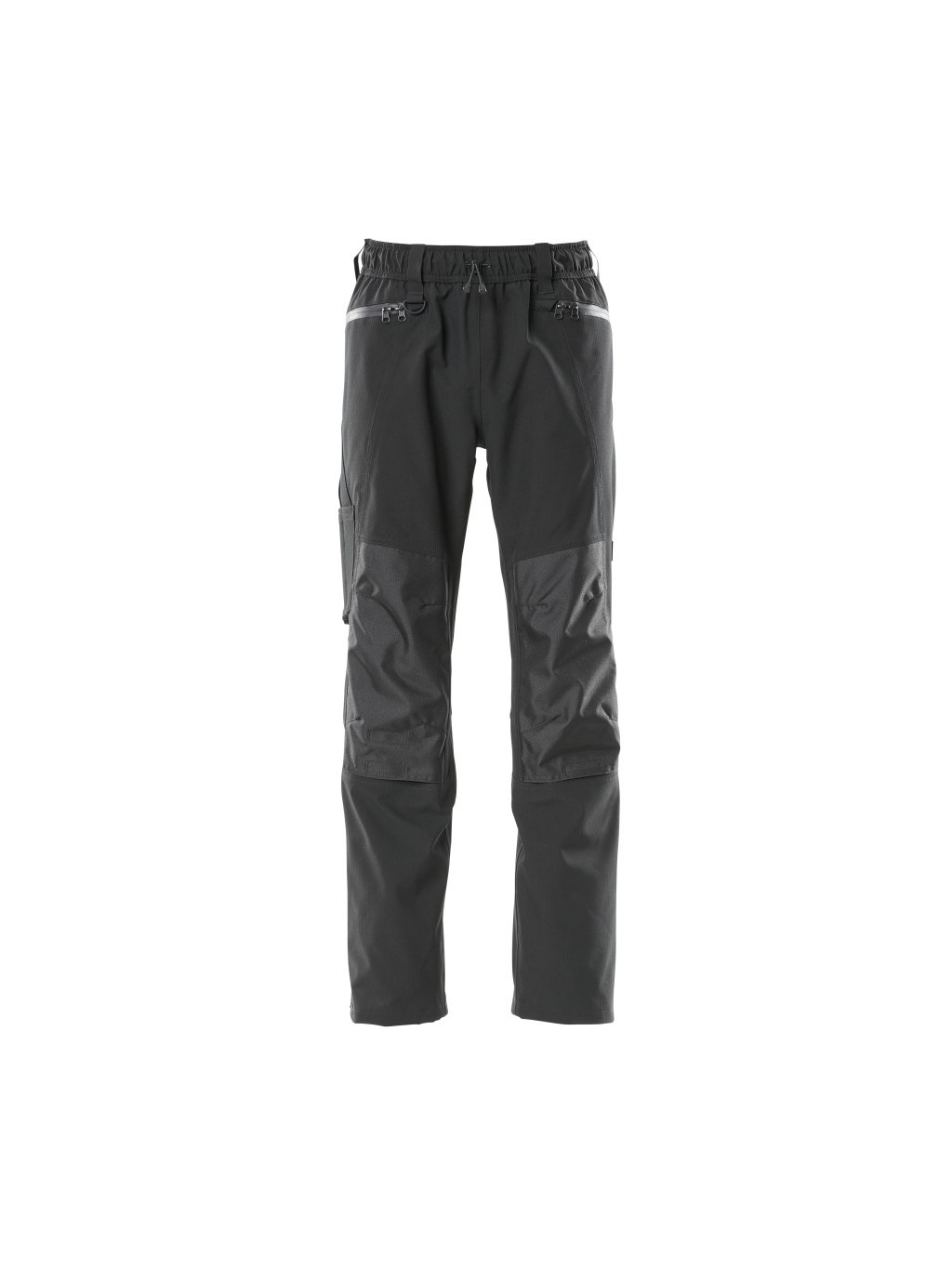 Prodyšné, větru a vodě odolné kalhoty s podlepenými švy; Ergonomicky střižené nohavice tvarované podle přirozených pohybů těla; D-kroužek na klíče nebo průkazky; Otvory na zip vpředu na obou stranách, aby bylo možné protáhnout stehenní kapsy otvory zespodu kalhot.Kapsy na kolenou jsou výškově nastavitelné, takže ochrana kolen je optimálně umístěna na kolenou; Certifikováno pro použití společně s chrániči kolen MASCOT typu SHORT nebo LONG, protože kapsa na chrániče kolen je výškově nastavitelná; Extra dlouhý zip s pruhem pro ochranu před povětrnostními vlivy na vnější straně nohavice, pro snadné použití společně s botami.