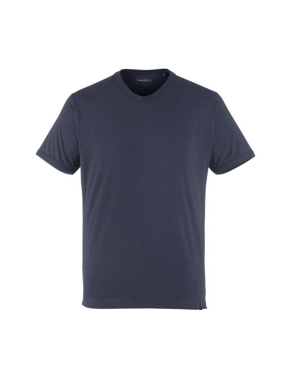 Moderní střih přiléhající k tělu s dostatečnou volností pohybu; česaná bavlna pohlcuje vlhkost a je velmi příjemná na nošení; páska přes šev u krku, takže šev nepřekáží; rozparky na bocích; mírně delší spodní lem na zádech.