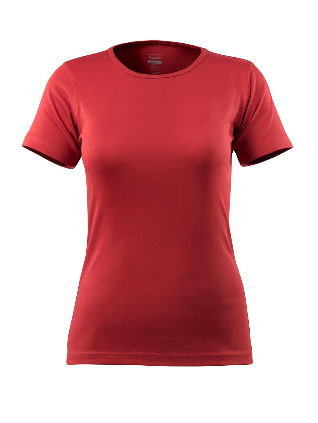 Materiál ze 100% bavlny, který pohlcuje vlhkost a je příjemný na pokožce; speciálně navržený pro ženy a střih na míru; žebrované manžety u krku; páska přes šev u krku, takže šev nepřekáží.