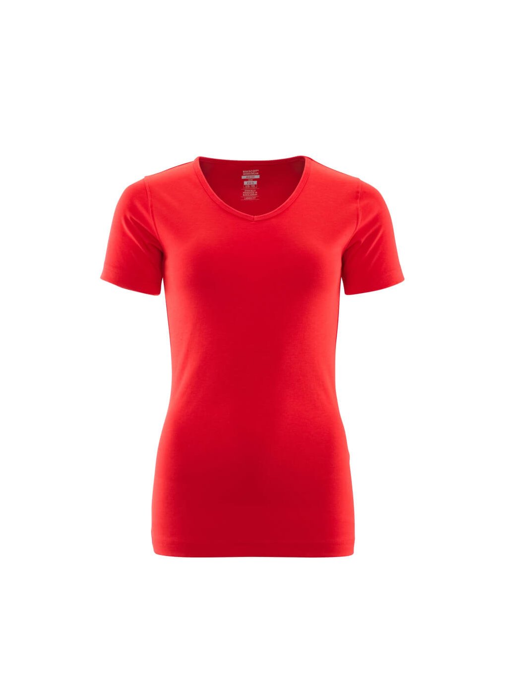 Materiál ze 100% bavlny, který pohlcuje vlhkost a je příjemný na pokožce; speciálně navržený pro ženy a střih na míru; žebrované manžety u krku; páska přes šev u krku, takže šev nepřekáží.
