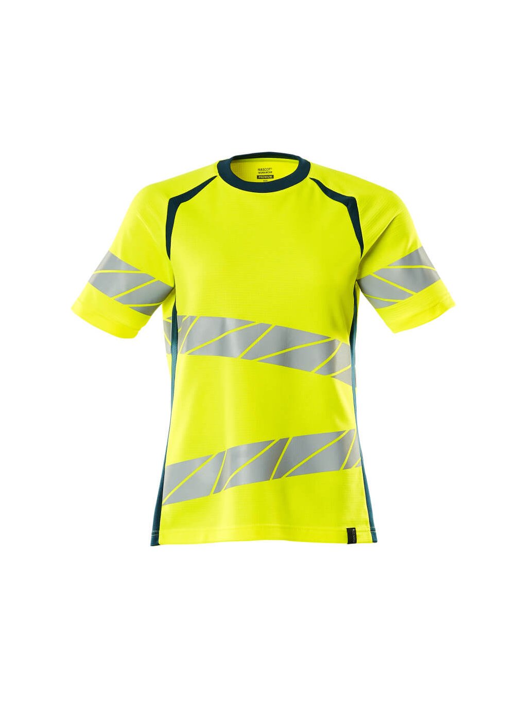 Premium. Dámský střih. Fluorescenční a s diagonálními odlesky. Dvoubarevné. Moderní střih. Pohodlná bavlna uvnitř a odolný polyester s elastickým povrchem na vnější straně. Čtvercový žakárový vzor. Odlesky jsou elastické. Kulatý výstřih. Žebrované manžety u krku. Páska u krku.