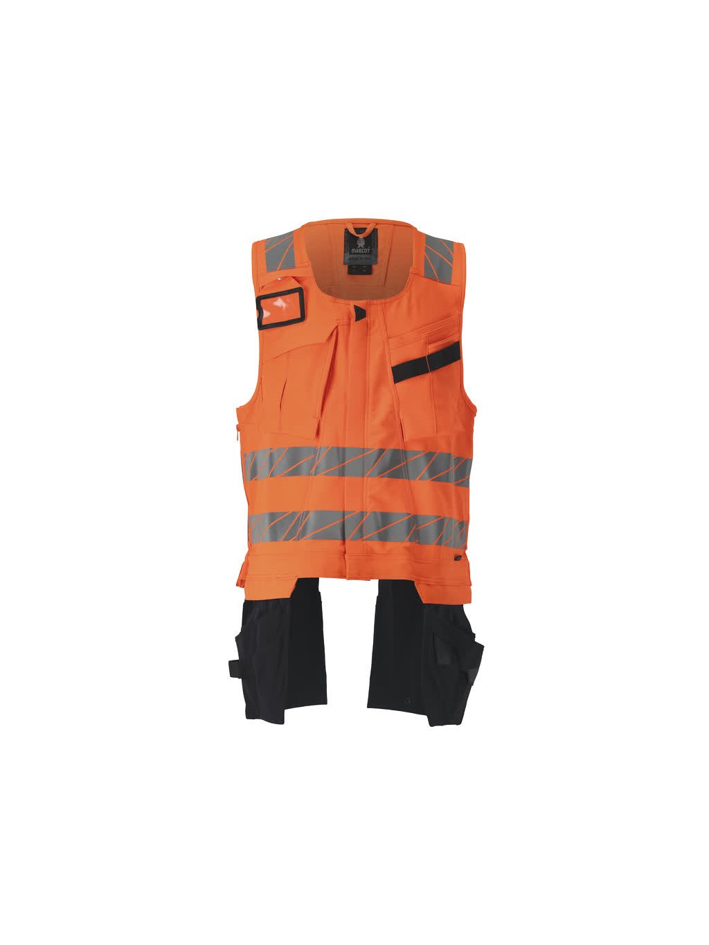 Fluorescenční s odlesky. S vodoodpudivou úpravou. Ultimátní strečová tkanina s nízkou hmotností a dobrou odolností. Zapínání na zip. Odnímatelné pouzdro na průkaz totožnosti. Náprsní kapsa. Náprsní kapsa na mobilní telefon s klopou. Dvě odnímatelné přední kapsy na zavěšení a dvě zadní kapsy na zavěšení. Zadní závěsné kapsy lze zapnout na knoflíky. Vnitřní závěsná kapsa se zapínáním na druk. Závěsná kapsa s podšívkou na mobilní telefon a magnetickým zapínáním. Závěsné kapsy s výztuhami z materiálu Kevlar® a CORDURA®. Poutka na nářadí na obou stranách pasu. Nastavitelné pomocí zipů na obou stranách. Odvětrávání v zadní části. Větrání na bocích se zipy.