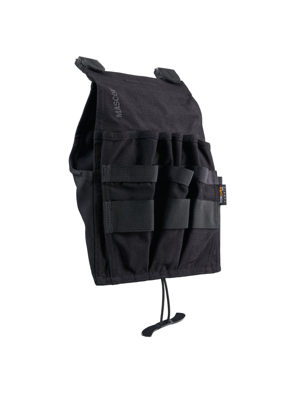 1 závěsná kapsa. Lze je snadno a samostatně připevnit pomocí systému Click Pocket System. Vysoká odolnost a mnoho kapes. 1 velká prostorná kapsa. 9 menších kapes na nářadí. Tři poutka a držák pro připevnění izolační pásky. Poutko pro zavěšení po vyjmutí. Rozměry 20 x 30 cm.