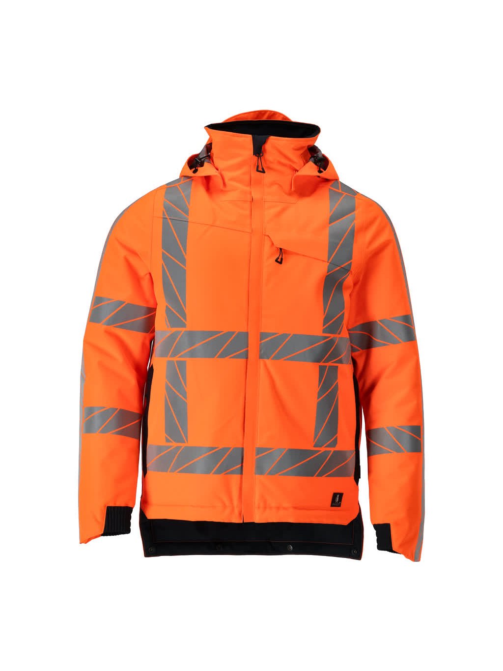 Fluorescenční s vertikální a horizontální reflexní páskou. Vysoce odolná, prodyšná, větruodolná a nepromokavá tkanina. S lehkou izolací CLIMASCOT®. Podlepené švy. Odnímatelná, podšitá kapuce s nastavitelnými elastickými šňůrkami. Zapínání na zip a dvojitý ochranný proužek proti povětrnostním vlivům. Vnitřní kapsy - dvě na zip a jedna otevřená síťovaná kapsa. Náprsní kapsa na zip. Přední kapsy na zip. Stojatý límec. Žebrovaný pas na přední straně, spodní vnitřní strana lemu. Prodloužená záda lze rozepnout pro lepší ochranu před větrem a povětrnostními vlivy. Pružné manžety. Zip v podšívce na zadní straně pro připevnění loga/výšivky.