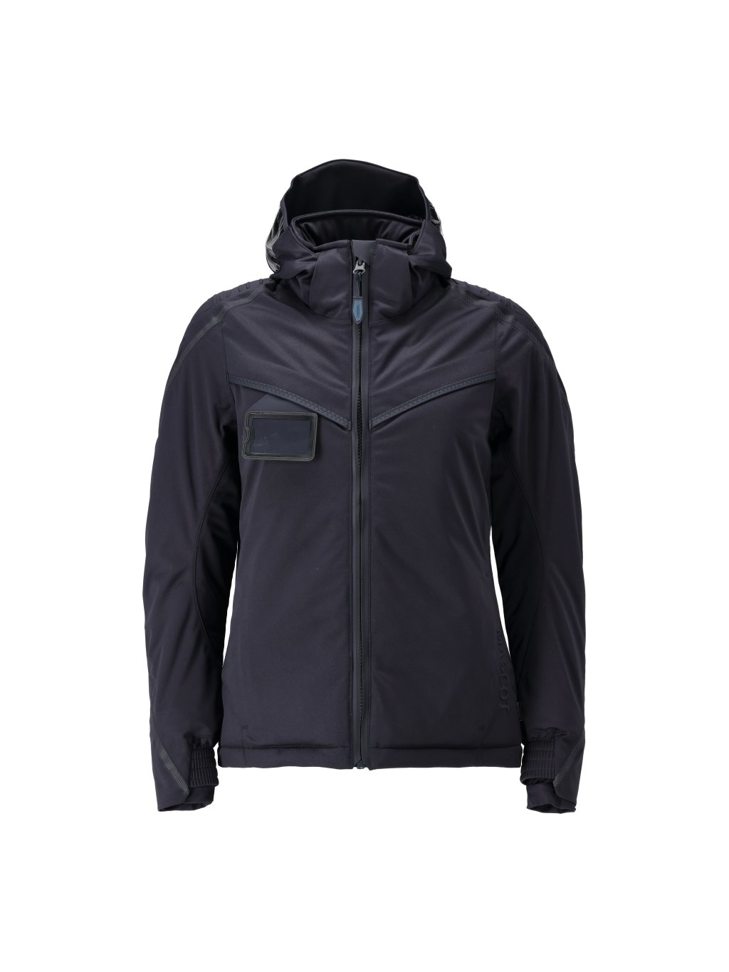 Dámský střih. Maximálně elastická tkanina s nízkou hmotností. Prodyšný, větruodolný a vodoodpudivý. Podlepené švy. S lehkou izolací CLIMASCOT®. Zapínání na zip a vnitřní ochranný pruh proti povětrnostním vlivům. Kapuce je podšitá a odnímatelná. Kapuce má po stranách průhledné plastové vsadky. Stojatý límec. Vnitřní kapsy. Přední kapsy na zip. Držák na průkaz totožnosti je odnímatelný. Ergonomicky střižené rukávy umožňují velkou volnost pohybu. Elastické manžety. Žebrované manžety (skryté pod pruhem chránícím před povětrnostními vlivy) na zápěstí. Otvory na palce na zápěstí. Prodloužená zadní část. Zip v podšívce na zadní straně pro připevnění loga/výšivky. Reflexní efekty.