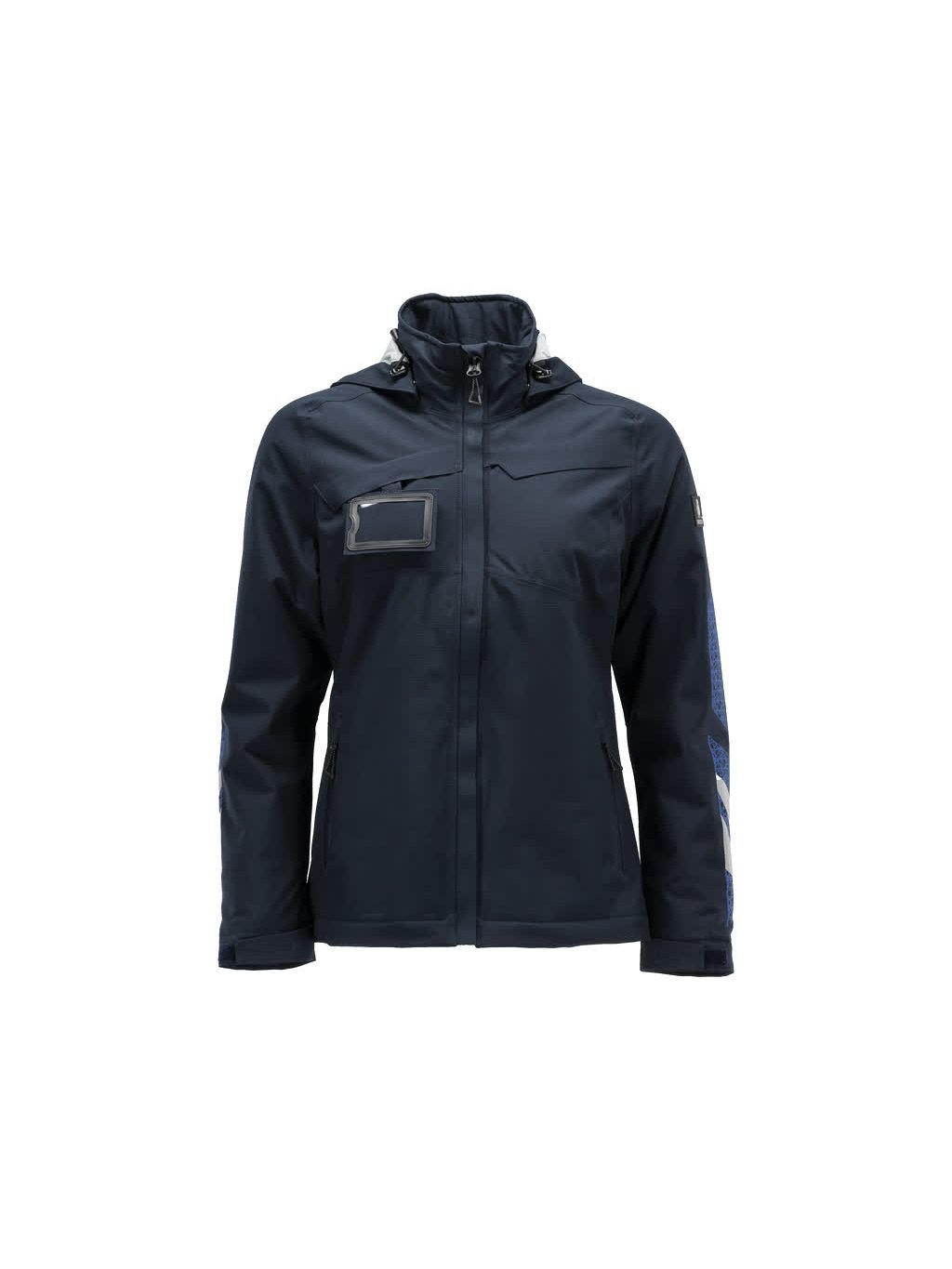 Dámský střih. Lehká tkanina v metráži. Prodyšná, větruodolná a nepromokavá. Podlepené švy. S lehkou izolací CLIMASCOT®. Odnímatelná, podšitá kapuce s nastavitelnými elastickými šňůrkami. Zapínání na zip a dvojitý ochranný pruh proti povětrnostním vlivům. Vnitřní kapsa na zip. Odnímatelné pouzdro na průkaz totožnosti. Přední kapsy na zip. Nastavitelný elastický spodní lem. Zip v podšívce na zadní straně pro připevnění loga/výšivky. Žebrované manžety (skryté pod pruhem chránícím před povětrnostními vlivy) na zápěstí. S potiskem a reflexními detaily.