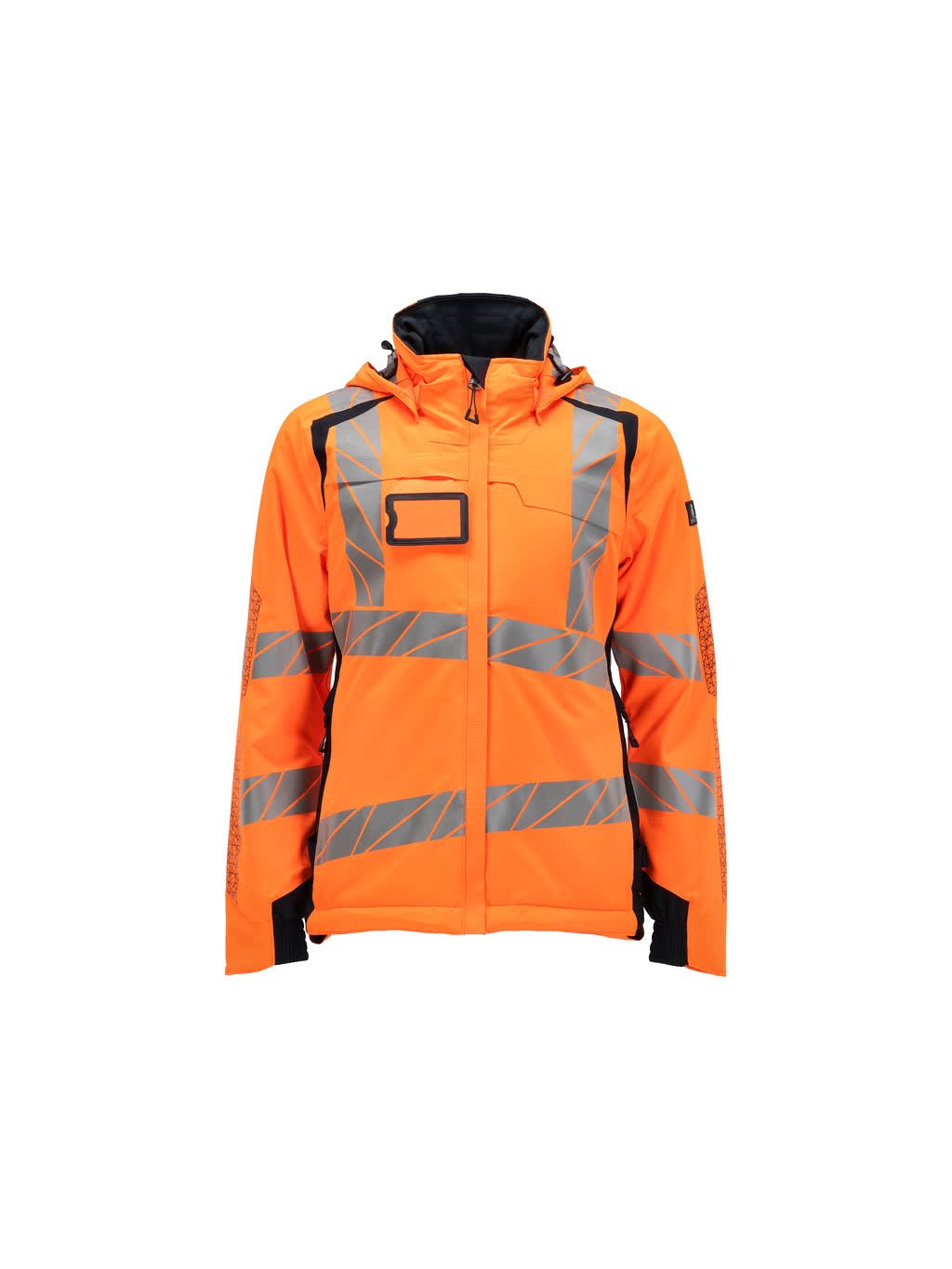 Dámský střih. Fluorescenční a s reflexními pruhy na ramenou a diagonálními reflexními prvky. Vynikající prodyšné vlastnosti a také větru a voděodolnost. S lehkou izolací CLIMASCOT®. Dvoubarevná. Podlepené švy. Odnímatelná, podšitá kapuce s nastavitelnými elastickými šňůrkami. Zapínání na zip a dvojitý ochranný pruh proti povětrnostním vlivům. Vnitřní kapsy - dvě na zip a jedna otevřená síťovaná kapsa. Odnímatelné pouzdro na průkaz totožnosti. Přední kapsy s voděodolnými zipy. Stojatý límec. Žebrovaný pas vpředu, spodní vnitřní lem. Prodloužený zadní díl se zapínáním na knoflíky pro lepší ochranu proti větru a povětrnostním vlivům. Elastické zápěstí. Zip v podšívce na zadní straně pro připevnění loga/výšivky. S potiskem.