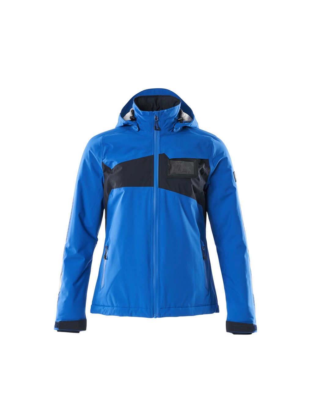 Dámský střih. Lehká tkanina v metráži. Prodyšná, větruodolná a nepromokavá. Podlepené švy. S lehkou izolací CLIMASCOT®. Odnímatelná, podšitá kapuce s nastavitelnými elastickými šňůrkami. Zapínání na zip a dvojitý ochranný pruh proti povětrnostním vlivům. Vnitřní kapsa na zip. Odnímatelné pouzdro na průkaz totožnosti. Přední kapsy na zip. Nastavitelný elastický spodní lem. Zip v podšívce na zadní straně pro připevnění loga/výšivky. Žebrované manžety (skryté pod pruhem chránícím před povětrnostními vlivy) na zápěstí. S potiskem a reflexními detaily.