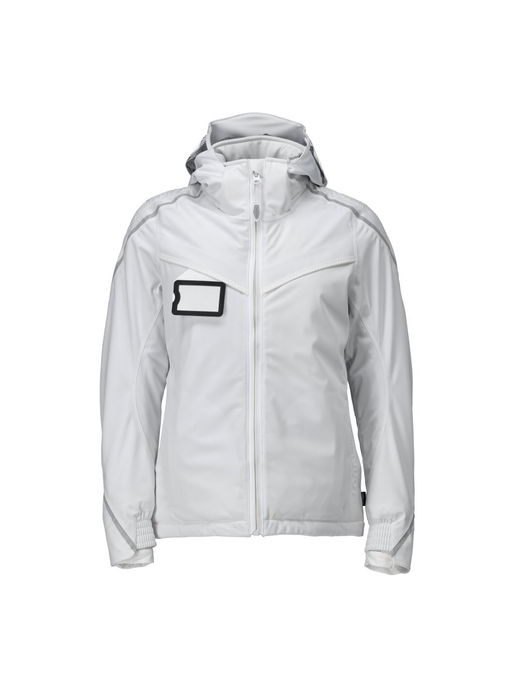 Dámský střih. Maximálně elastická tkanina s nízkou hmotností. Prodyšný, větruodolný a vodoodpudivý. Podlepené švy. S lehkou izolací CLIMASCOT®. Zapínání na zip a vnitřní ochranný pruh proti povětrnostním vlivům. Kapuce je podšitá a odnímatelná. Kapuce má po stranách průhledné plastové vsadky. Stojatý límec. Vnitřní kapsy. Přední kapsy na zip. Držák na průkaz totožnosti je odnímatelný. Ergonomicky střižené rukávy umožňují velkou volnost pohybu. Elastické manžety. Žebrované manžety (skryté pod pruhem chránícím před povětrnostními vlivy) na zápěstí. Otvory na palce na zápěstí. Prodloužená zadní část. Zip v podšívce na zadní straně pro připevnění loga/výšivky. Reflexní efekty.