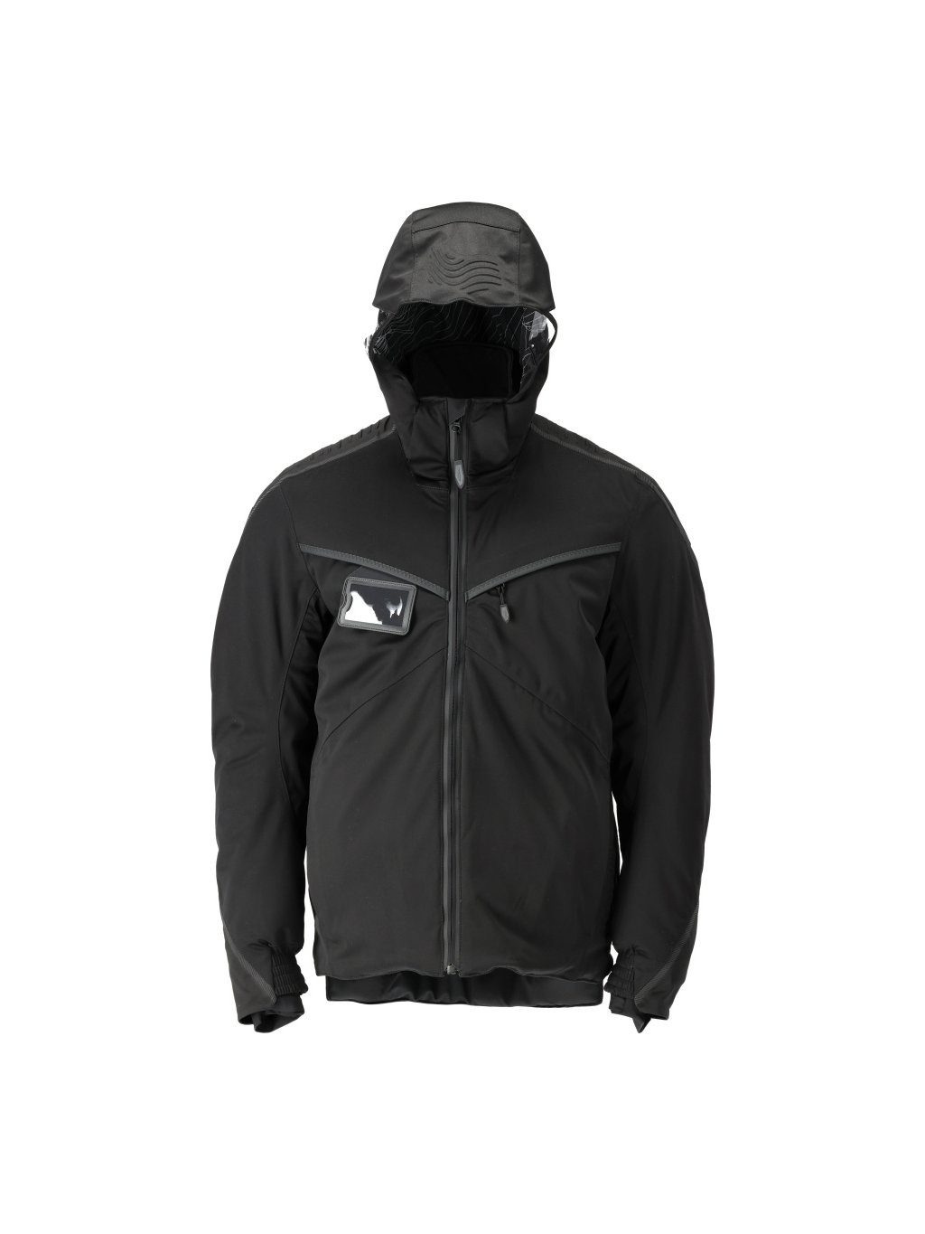 Maximálně elastická tkanina s nízkou hmotností. Prodyšná, větruodolná a vodoodpudivá. Podlepené švy. S lehkou izolací CLIMASCOT®. Zapínání na zip a vnitřní ochranný pruh proti povětrnostním vlivům. Kapuce je podšitá a odnímatelná. Kapuce má po stranách průhledné plastové vsadky. Stojatý límec. Náprsní kapsa na zip. Přední kapsy na zip. Odnímatelné pouzdro na průkaz totožnosti. Ergonomicky střižené rukávy umožňují velkou volnost pohybu. Vnitřní kapsy. Elastické manžety. Žebrované manžety (skryté pod légou proti povětrnostním vlivům) na zápěstí. Otvory na palce na zápěstí. Prodloužená zadní část. Zip v podšívce na zadní straně pro připevnění loga/výšivky. Reflexní efekty.