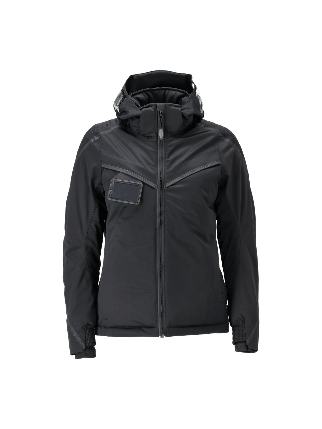 Dámský střih. Maximálně elastická tkanina s nízkou hmotností. Prodyšný, větruodolný a vodoodpudivý. Podlepené švy. S lehkou izolací CLIMASCOT®. Zapínání na zip a vnitřní ochranný pruh proti povětrnostním vlivům. Kapuce je podšitá a odnímatelná. Kapuce má po stranách průhledné plastové vsadky. Stojatý límec. Vnitřní kapsy. Přední kapsy na zip. Držák na průkaz totožnosti je odnímatelný. Ergonomicky střižené rukávy umožňují velkou volnost pohybu. Elastické manžety. Žebrované manžety (skryté pod pruhem chránícím před povětrnostními vlivy) na zápěstí. Otvory na palce na zápěstí. Prodloužená zadní část. Zip v podšívce na zadní straně pro připevnění loga/výšivky. Reflexní efekty.