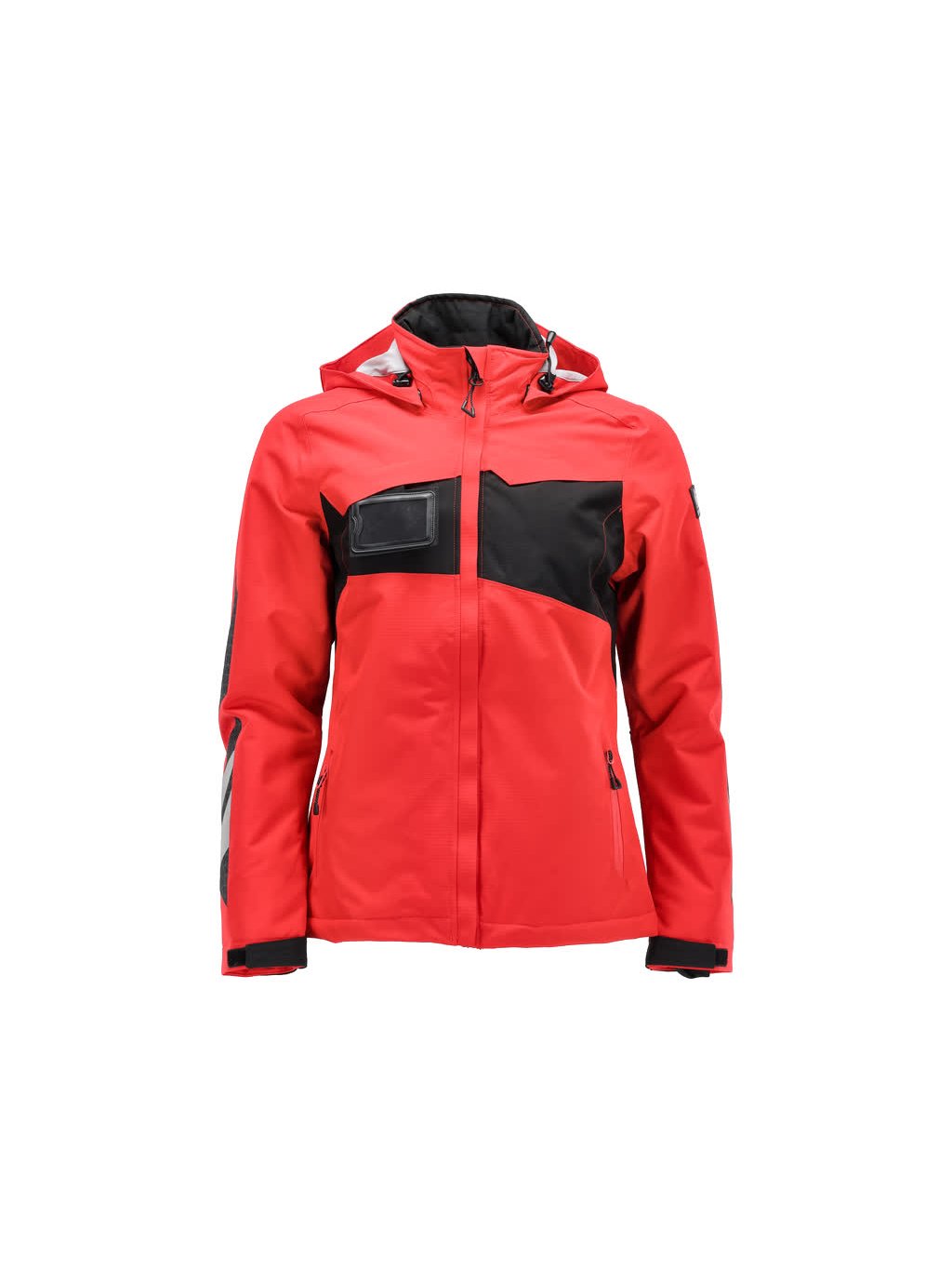 Dámský střih. Prodyšná, větruodolná a nepromokavá. Podlepené švy. S lehkou izolací CLIMASCOT®. Odnímatelná, podšitá kapuce s nastavitelnými elastickými šňůrkami. Zapínání na zip a dvojitý ochranný proužek proti povětrnostním vlivům. Vnitřní kapsa na zip. Odnímatelné pouzdro na průkaz totožnosti. Přední kapsy na zip. Nastavitelný elastický spodní lem. Zip v zadní podšívce pro připevnění loga/výšivky. Rukávy s výztuhou CORDURA®. Žebrované manžety (skryté pod légou proti povětrnostním vlivům) na zápěstí. S potiskem a reflexními detaily.