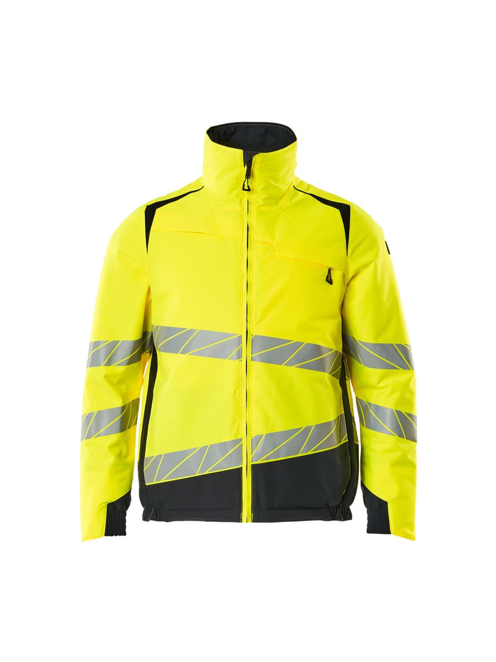 Fluorescenční a s diagonálními odlesky. Prodyšný, větruodolný a vodoodpudivý. S lehkou izolací CLIMASCOT®. Dvoubarevná. Stojatý límec. Zapínání na zip a dvojitý ochranný pruh proti povětrnostním vlivům. Vnitřní síťovaná kapsa. Náprsní kapsa na zip. D-kroužek. Přední kapsy se skrytým zapínáním na druky. Elastické zápěstí. Elastický spodní okraj na bocích. Zip v podšívce na zadní straně pro připevnění loga/výšivky. V zájmu dodržení normy EN ISO 20471 třídy 3 nemají velikosti XS a S kontrastní barvu.