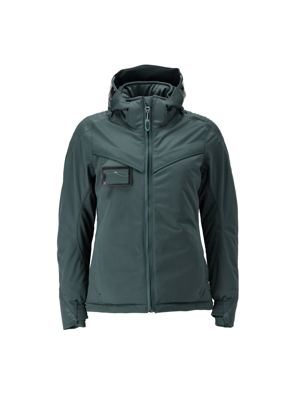 Dámský střih. Maximálně elastická tkanina s nízkou hmotností. Prodyšný, větruodolný a vodoodpudivý. Podlepené švy. S lehkou izolací CLIMASCOT®. Zapínání na zip a vnitřní ochranný pruh proti povětrnostním vlivům. Kapuce je podšitá a odnímatelná. Kapuce má po stranách průhledné plastové vsadky. Stojatý límec. Vnitřní kapsy. Přední kapsy na zip. Držák na průkaz totožnosti je odnímatelný. Ergonomicky střižené rukávy umožňují velkou volnost pohybu. Elastické manžety. Žebrované manžety (skryté pod pruhem chránícím před povětrnostními vlivy) na zápěstí. Otvory na palce na zápěstí. Prodloužená zadní část. Zip v podšívce na zadní straně pro připevnění loga/výšivky. Reflexní efekty.