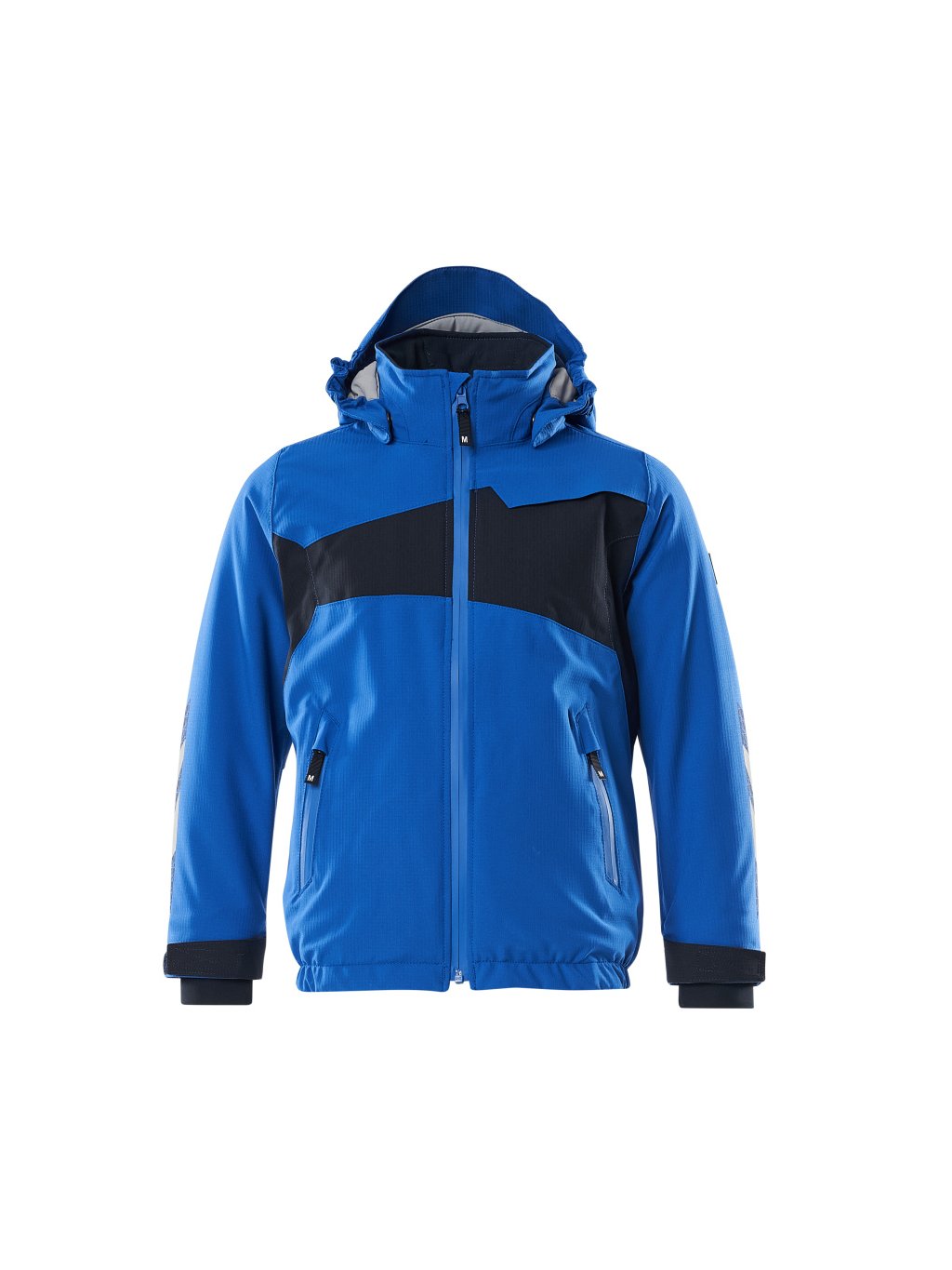 Lehká tkanina v metráži. S lehkou izolací CLIMASCOT®. Větruodolná a vodoodpudivá. Podlepené švy. Odnímatelná, podšitá kapuce s elastickou vložkou. Zapínání na zip a pásek proti povětrnostním vlivům. Přední kapsy na zip. Žebrované manžety (skryté pod légou proti povětrnostním vlivům) na zápěstí. S potiskem a reflexními detaily.