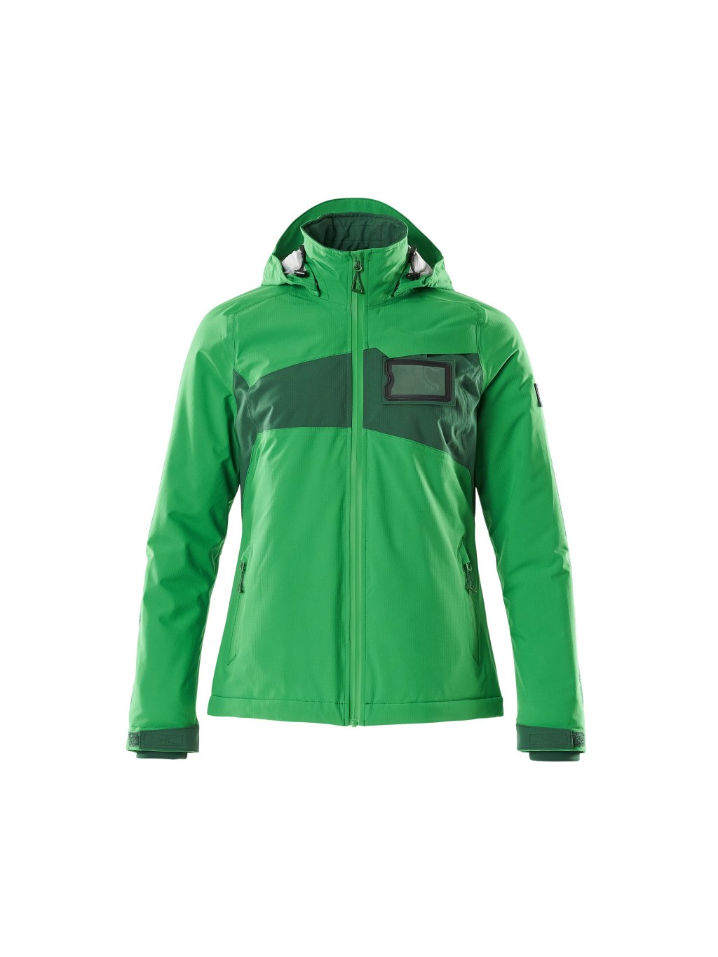 Dámský střih. Lehká tkanina v metráži. Prodyšná, větruodolná a nepromokavá. Podlepené švy. S lehkou izolací CLIMASCOT®. Odnímatelná, podšitá kapuce s nastavitelnými elastickými šňůrkami. Zapínání na zip a dvojitý ochranný pruh proti povětrnostním vlivům. Vnitřní kapsa na zip. Odnímatelné pouzdro na průkaz totožnosti. Přední kapsy na zip. Nastavitelný elastický spodní lem. Zip v podšívce na zadní straně pro připevnění loga/výšivky. Žebrované manžety (skryté pod pruhem chránícím před povětrnostními vlivy) na zápěstí. S potiskem a reflexními detaily.